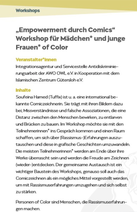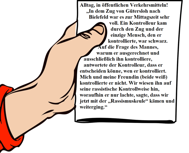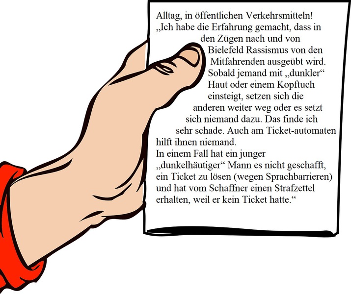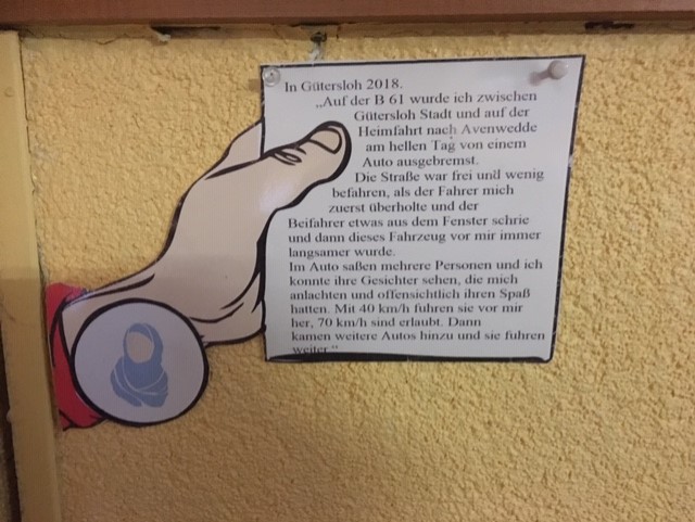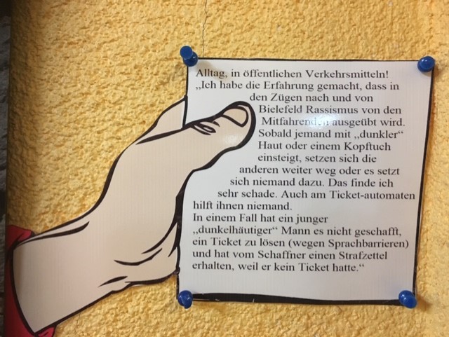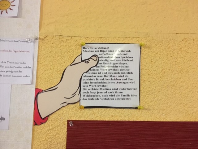 Erfahrungsberichte der von Diskriminierung und antimuslimischen Rassismus Betroffenen, wurde durch die Ausstellung die Möglichkeit gegeben, ihr Erleben in Gütersloh zu schildern und dadurch von Nichtbetroffenen gehört zu werden.
